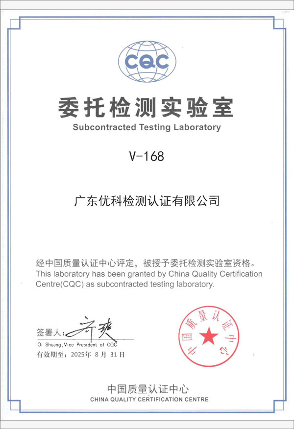 廣東優(yōu)科檢測認(rèn)證有限公司(簡稱:UKK)成?于2007年,是國內(nèi)專業(yè)的汽車整車及零部件、電子元器件第三方檢測實(shí)驗(yàn)室,國家級中小企業(yè)公共(技術(shù))服務(wù)示范平臺,獲得了國家?新技術(shù)企業(yè)、廣東省專精特新中小企業(yè)、市級工程技術(shù)研發(fā)中心等榮譽(yù)稱號。 More